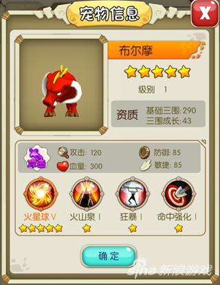 火属性的布尔摩是攻击力超强的和宠!还无灭分歧于其他攻击型的宠物特征,它完满融合了风属性宠物和地属性宠物的长处--均衡的防御和火速!